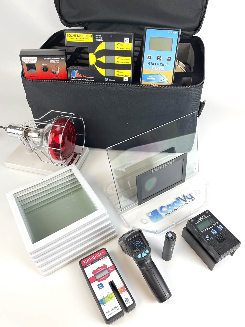 Combining the best tools in the industry so you protect yourself by evaluating every project, and perform convincing sales presentations. This kit includes tools for measuring glass thickness and identifying the location and type of Low-E coating. No more breaking glass, because you missed the Low-E coating in the window. The kit also allows for identifying tempered glass and laminated glass. The SP2080 Solar Transmission Meter equips you for a dynamic sales presentation.