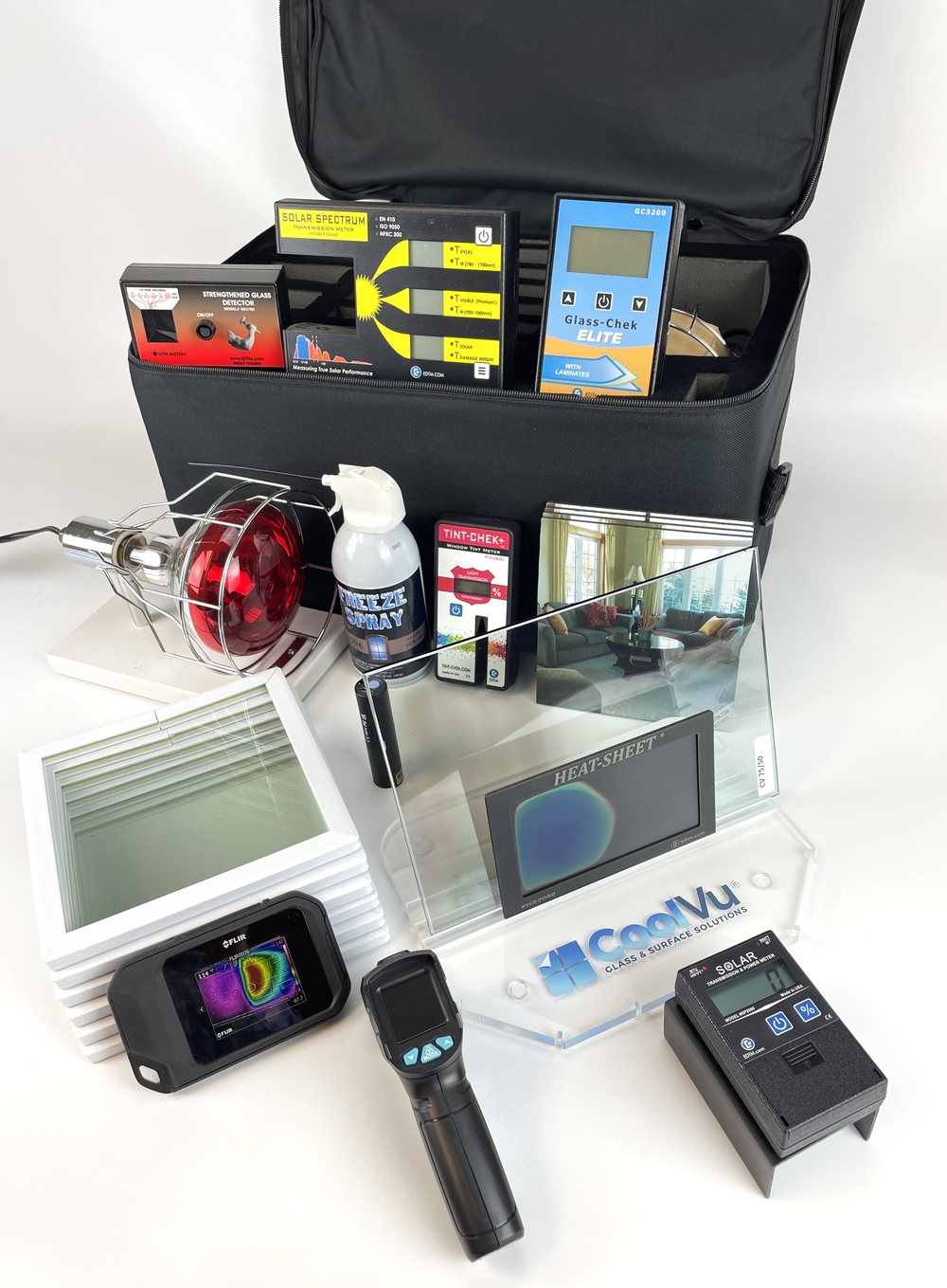 This ALL-INCLUSIVE kit includes every tool needed for assessing projects and conducting dynamic sales presentations. This kit adds the powerful capabilities of our C5IR Infrared Camera. Help your customers visibly see the performance of your window film. This kit also includes tools for measuring glass thickness and identifying the location and type of Low-E coating. No more breaking glass, because you missed the Low-E coating in the window. The kit also allows for identifying tempered glass and laminated glass. This kit even includes our popular Freeze Spray for checking seal failure of windows or showing the performance of Low-E window film.