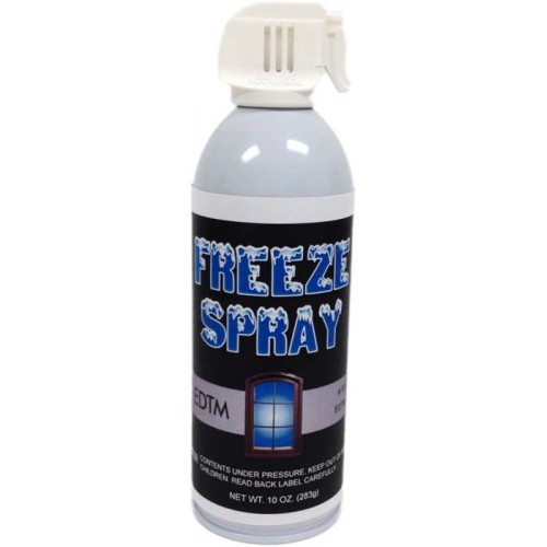 FREEZE SPRAY is also great for testing windows for seal failure. Spray near the corner of a double-pane or triple-pane window. Wipe away the frozen layer from the first surface, and check to see if there is a build-up of frost on the other side of the glass facing the air space. A layer of frost facing the inside air space confirms the presence of moisture inside the "sealed" window.  Moisture inside the air space of the window is a good indicator that the seal has been jeopardized.